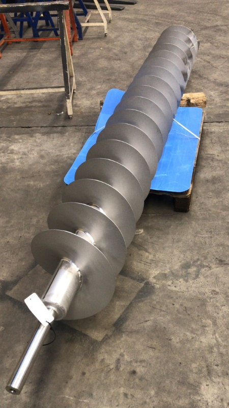 Een goede schroef bouwen is een ambacht. En precies daarin ligt onze kracht. Wij lassen de schroef in een manipulator, waarbij het werkstuk continu ronddraait en in één vloeiende beweging wordt afgelast. Daarna laten we de schroef in de lucht al draaiend afkoelen, om spanningen te minimaliseren en kromtrekken te voorkomen.